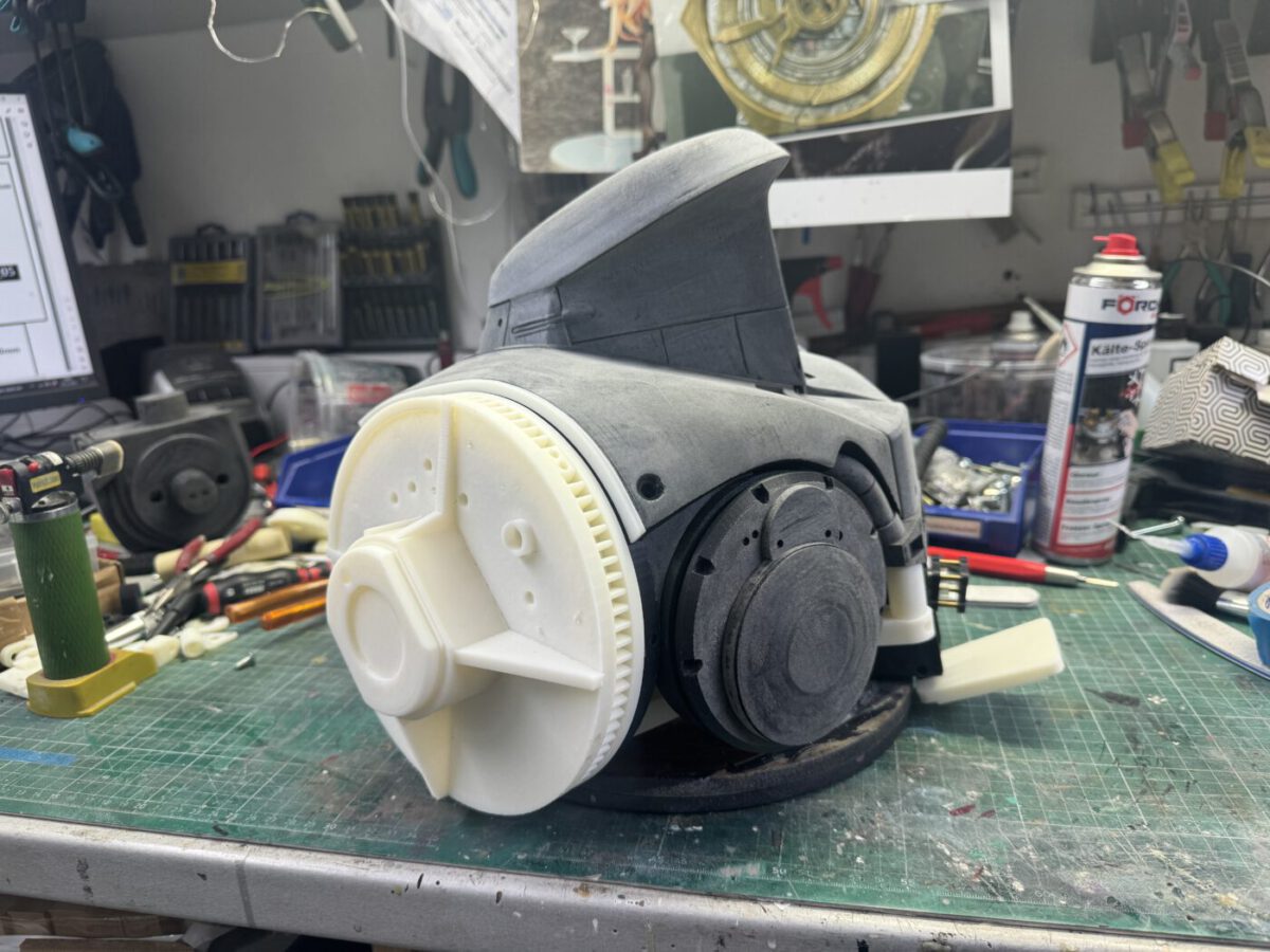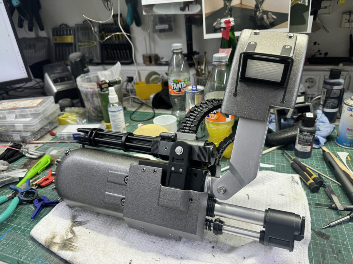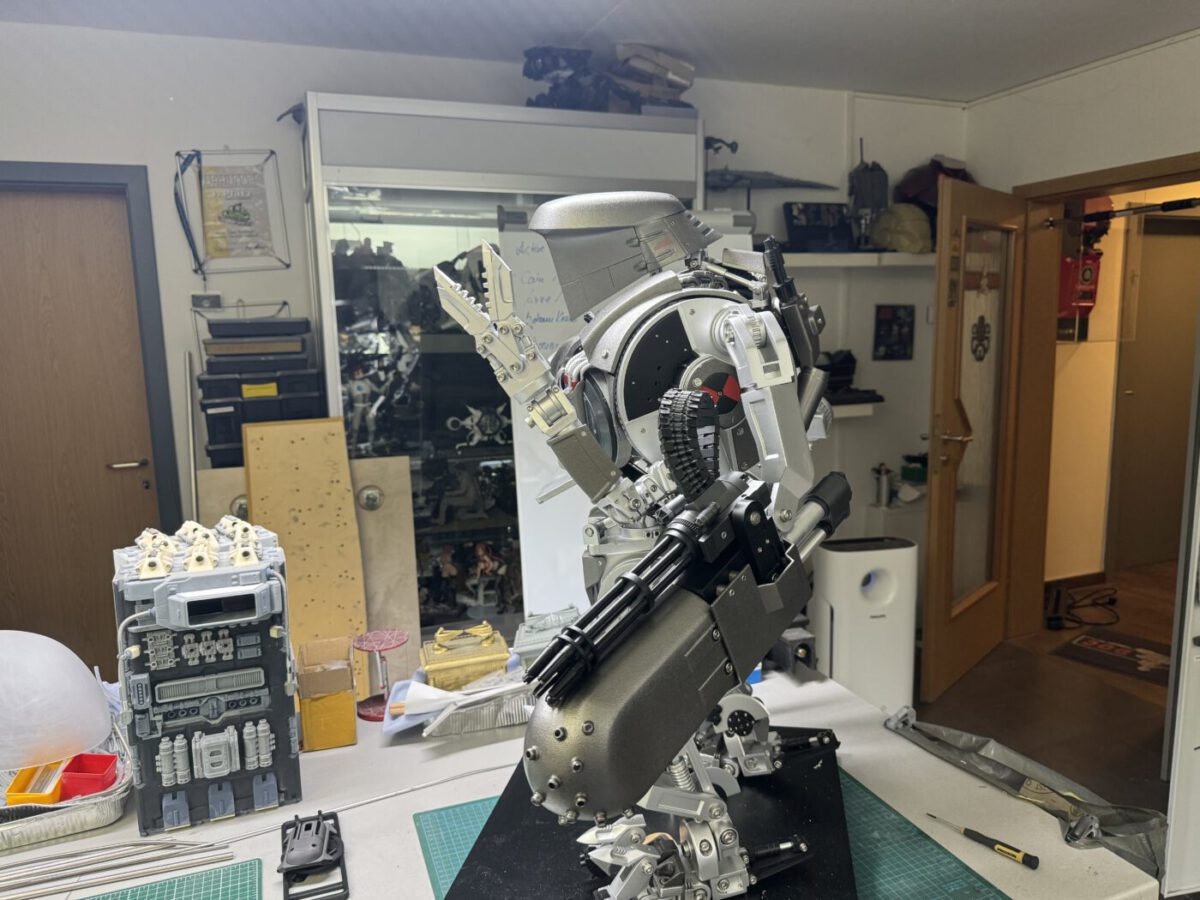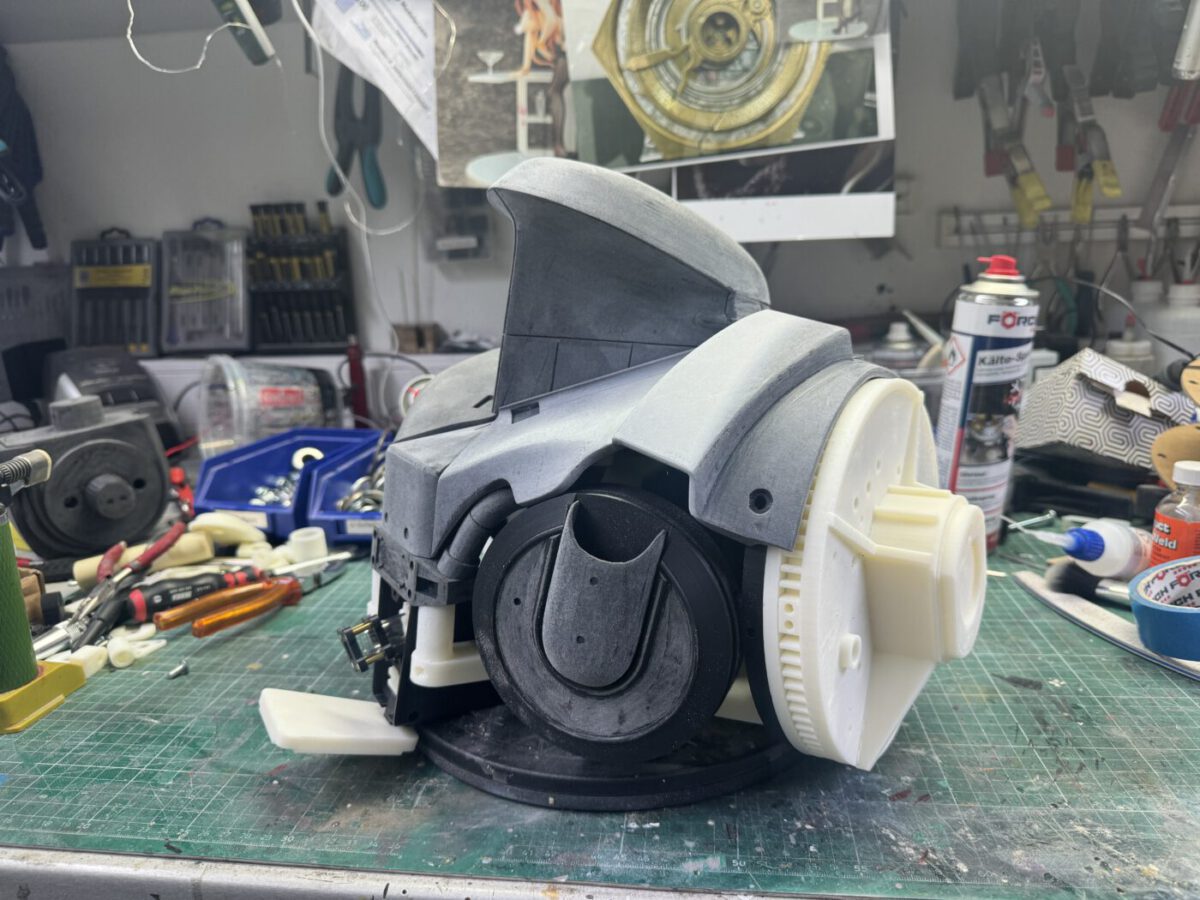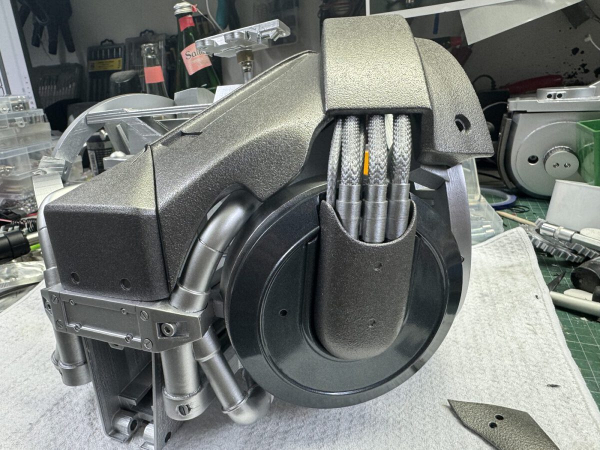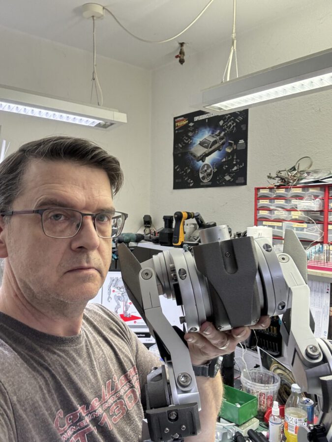 Apropos: a few pieces where redesigned: Marcus Heinemann did a new ammo belt, which was already “bent”, Nico made a new transformer and I made a few pieces myself, like the hinges, cable adapter, light housings etc.