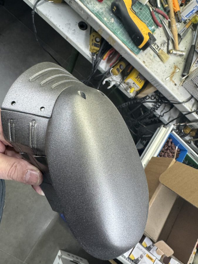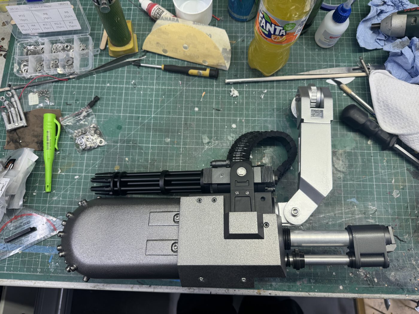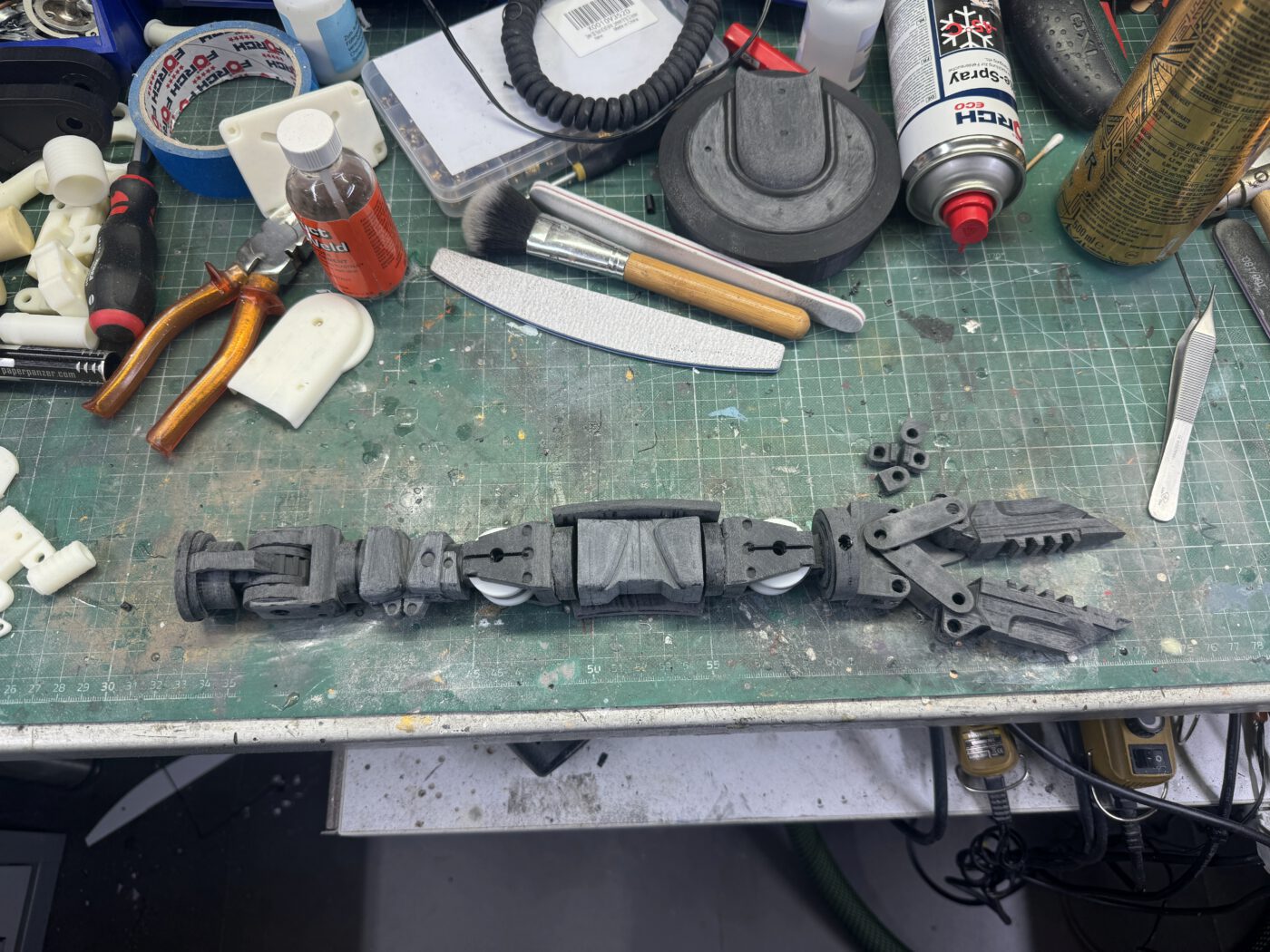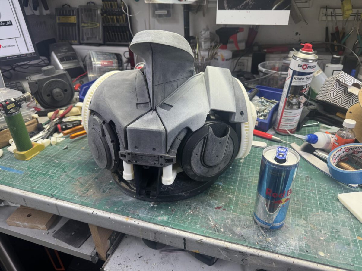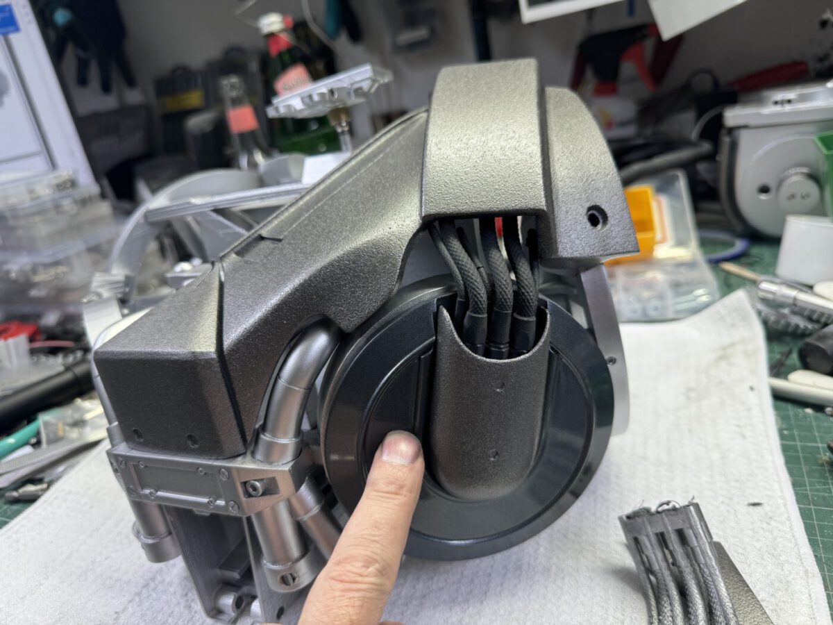 Apropos: a few pieces where redesigned: Marcus Heinemann did a new ammo belt, which was already “bent”, Nico made a new transformer and I made a few pieces myself, like the hinges, cable adapter, light housings etc.