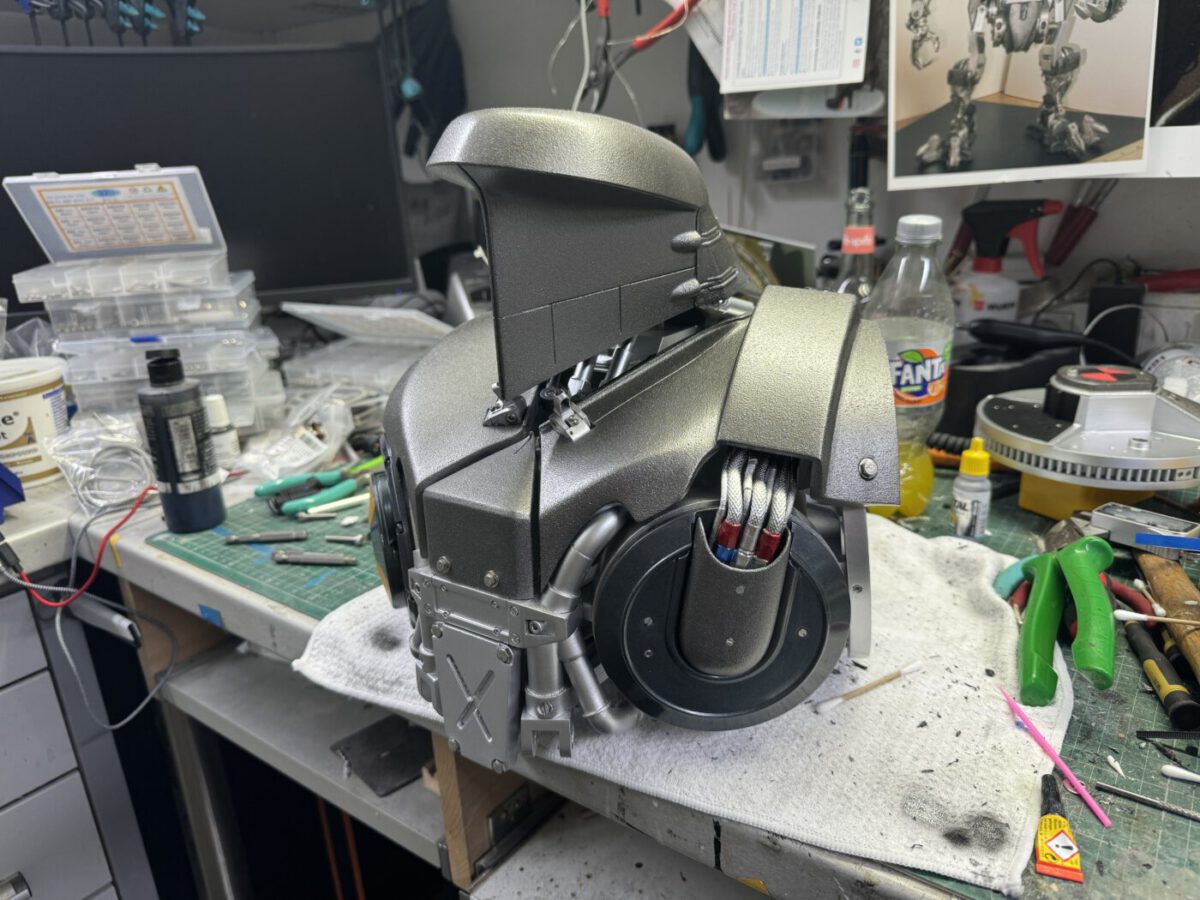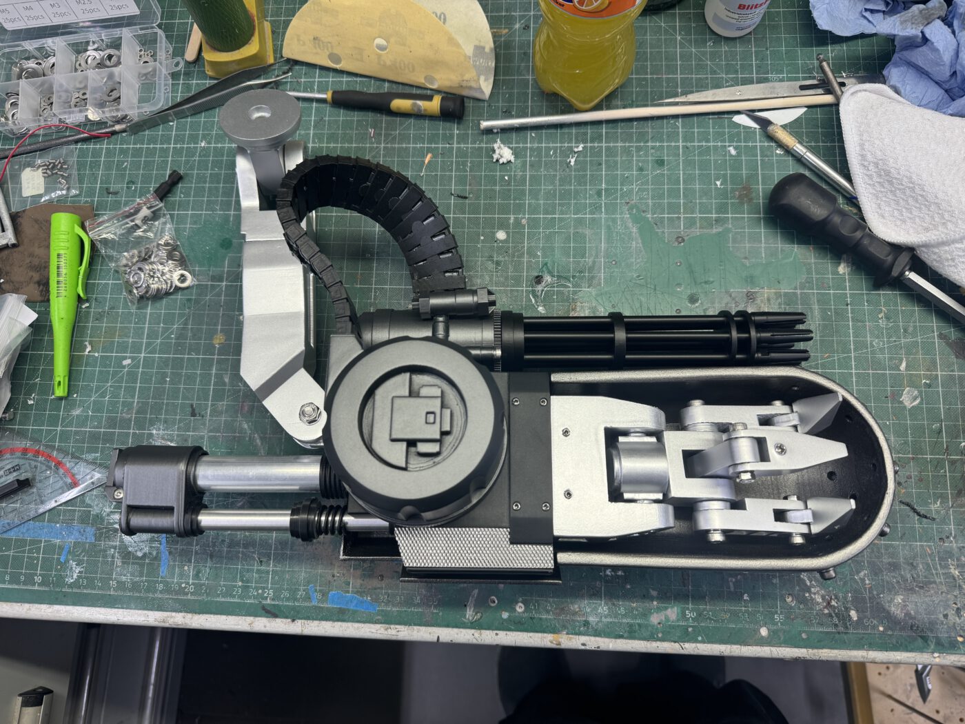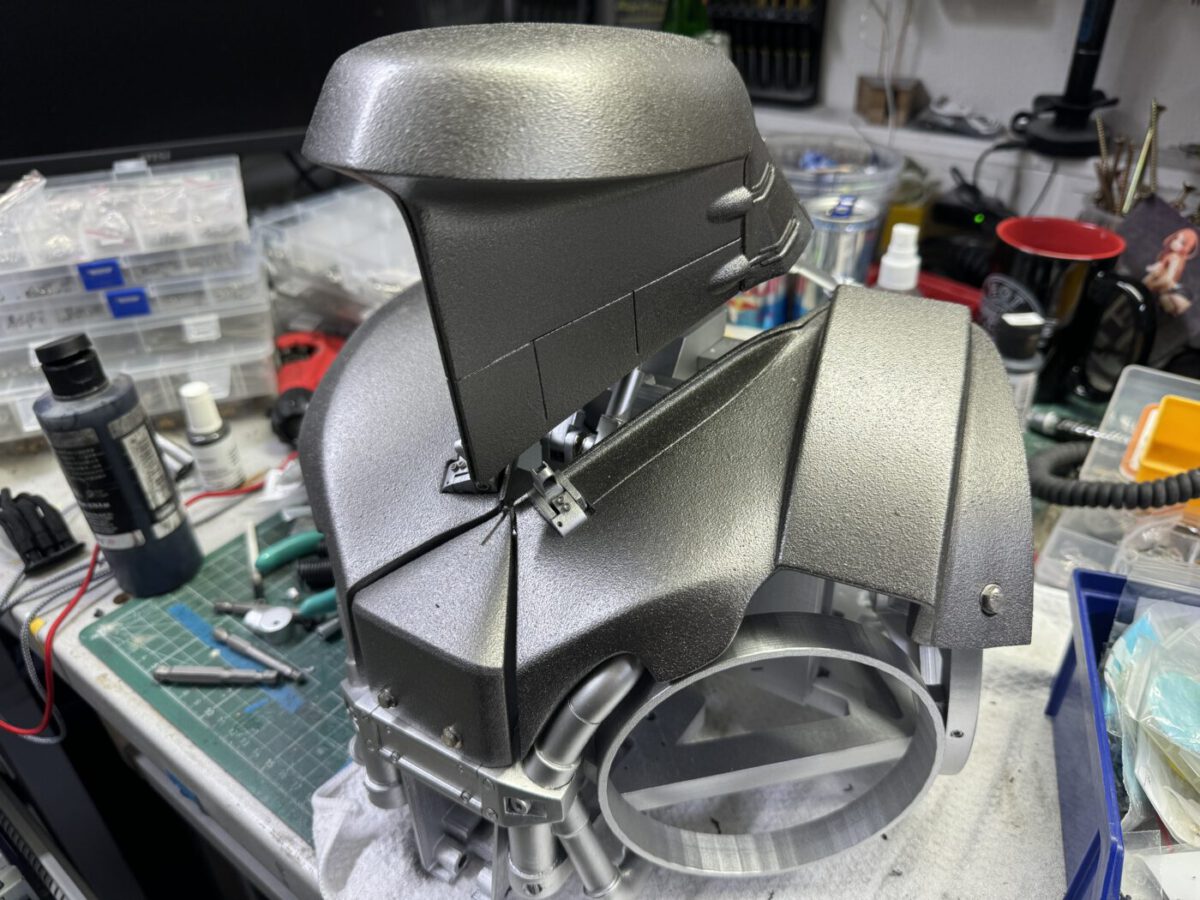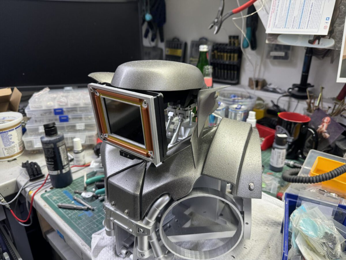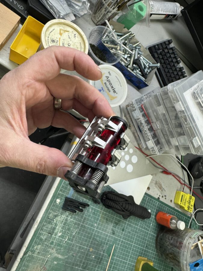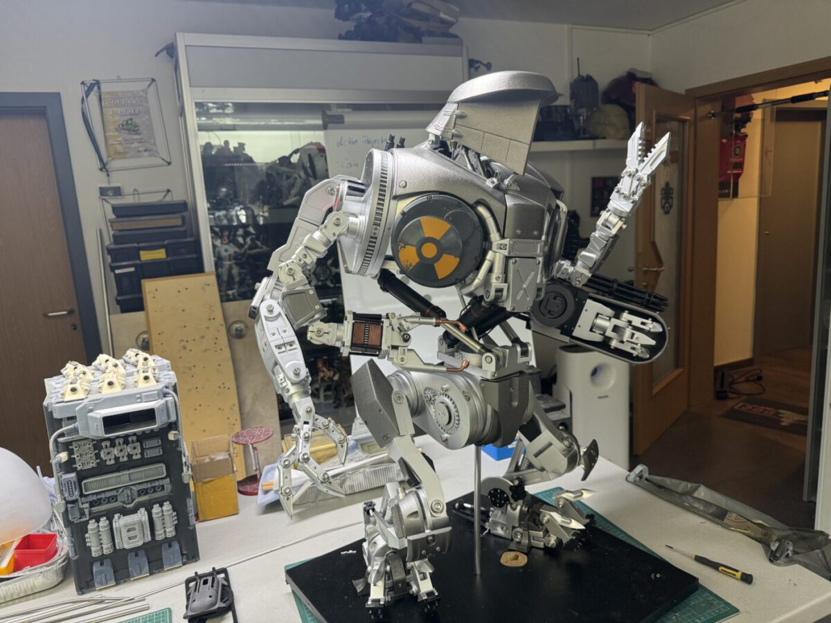 Apropos: a few pieces where redesigned: Marcus Heinemann did a new ammo belt, which was already “bent”, Nico made a new transformer and I made a few pieces myself, like the hinges, cable adapter, light housings etc.