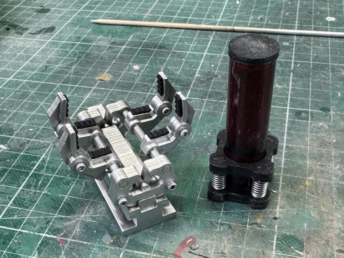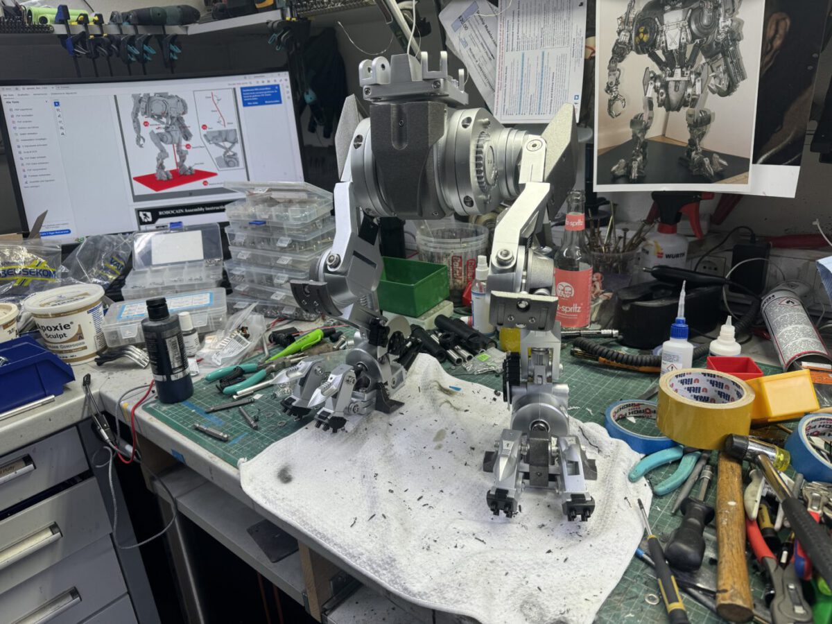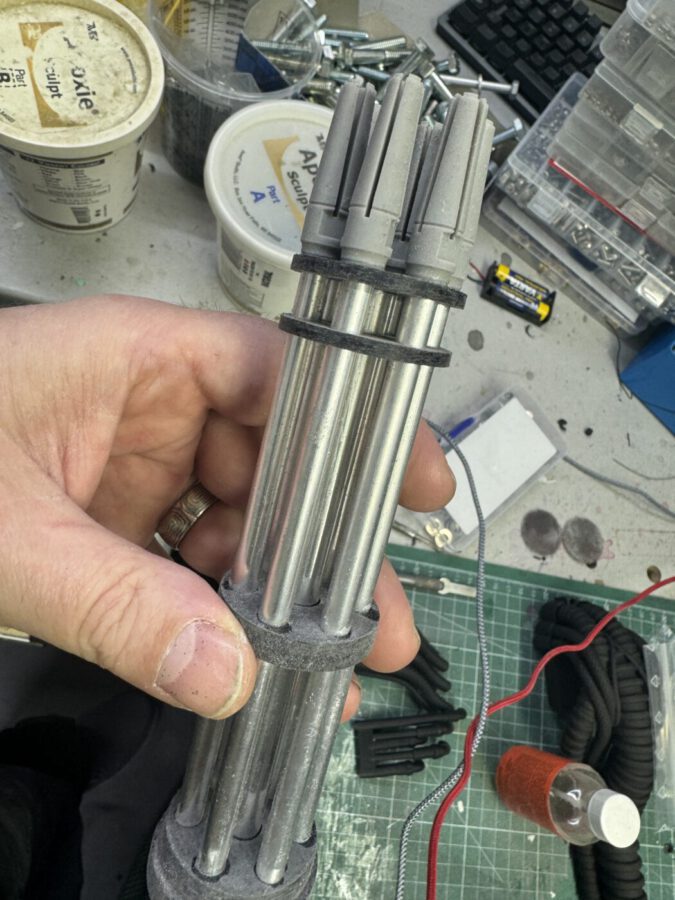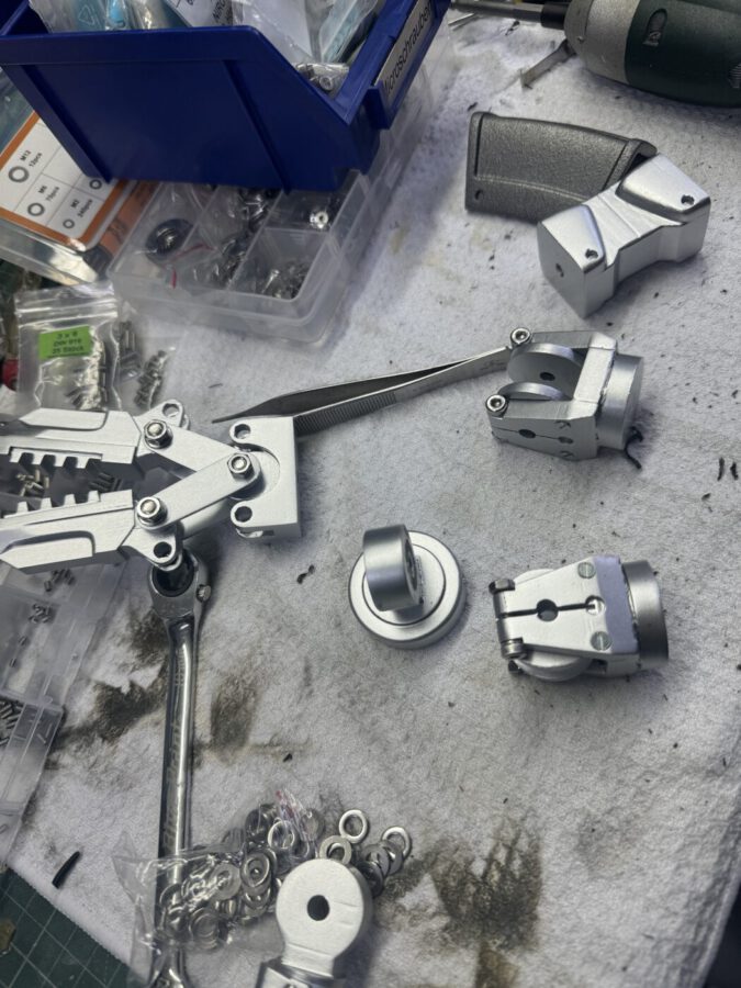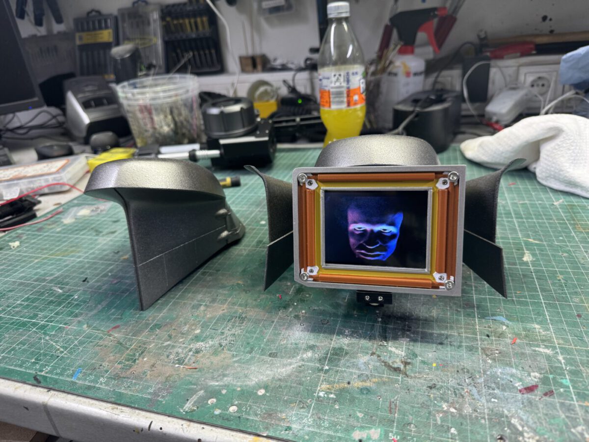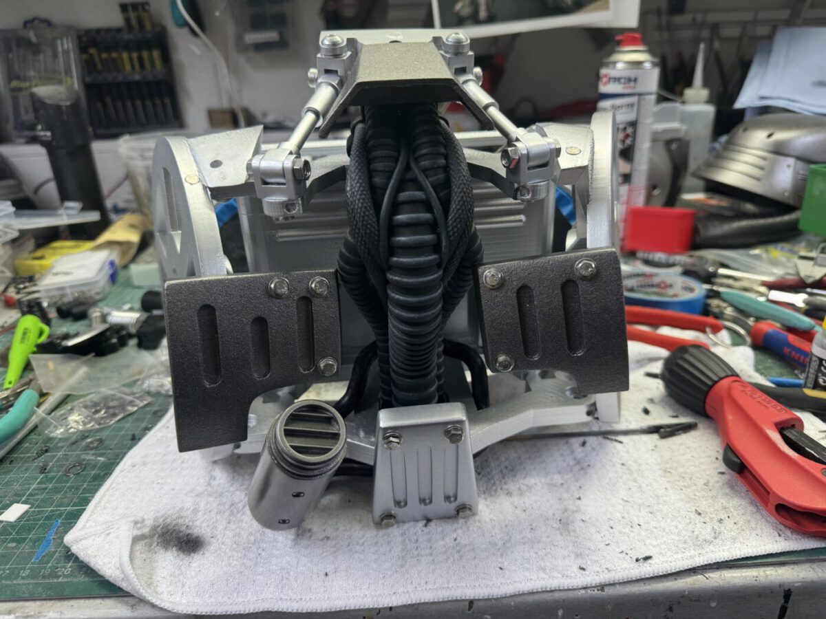 Apropos: a few pieces where redesigned: Marcus Heinemann did a new ammo belt, which was already “bent”, Nico made a new transformer and I made a few pieces myself, like the hinges, cable adapter, light housings etc.