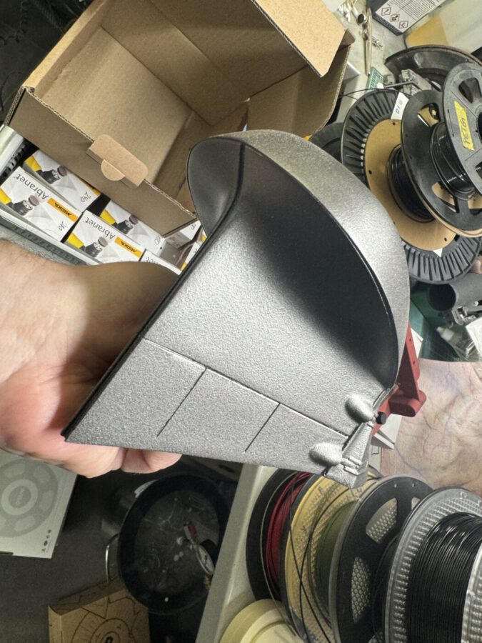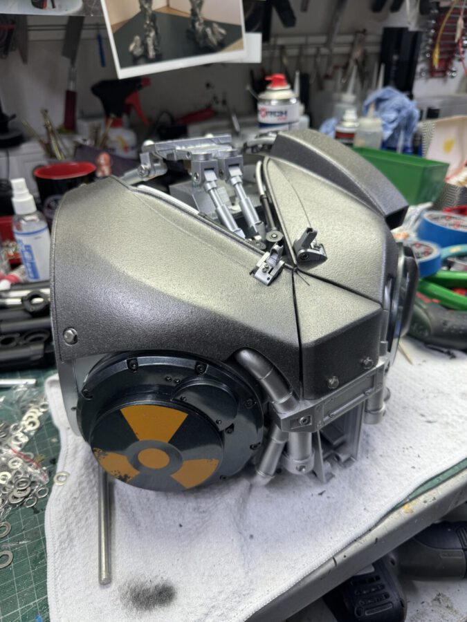About 95% was printed on my Bambu X1C in ABS. Some very small or detailed parts like the hinges for the helmet or the transformer for the welding tool or the ammo belt were printed in Resin by Nico.