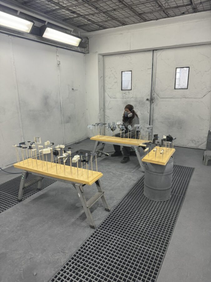 Simone also applied the final paint coat after sanding (and after I prepped the armor parts with some structure spray).